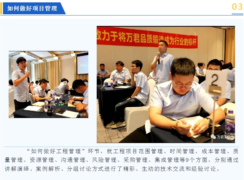 此次研討會主要從“萬君筑天文化力量”、“角色認(rèn)知&能力提升”、“如何做好項目管理”三個維度展開。