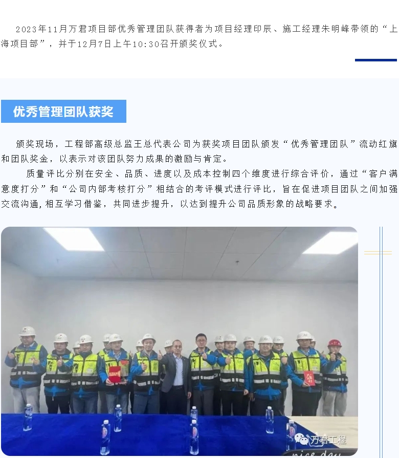 2023年11月萬君項(xiàng)目部優(yōu)秀管理團(tuán)隊(duì)頒獎(jiǎng)儀式